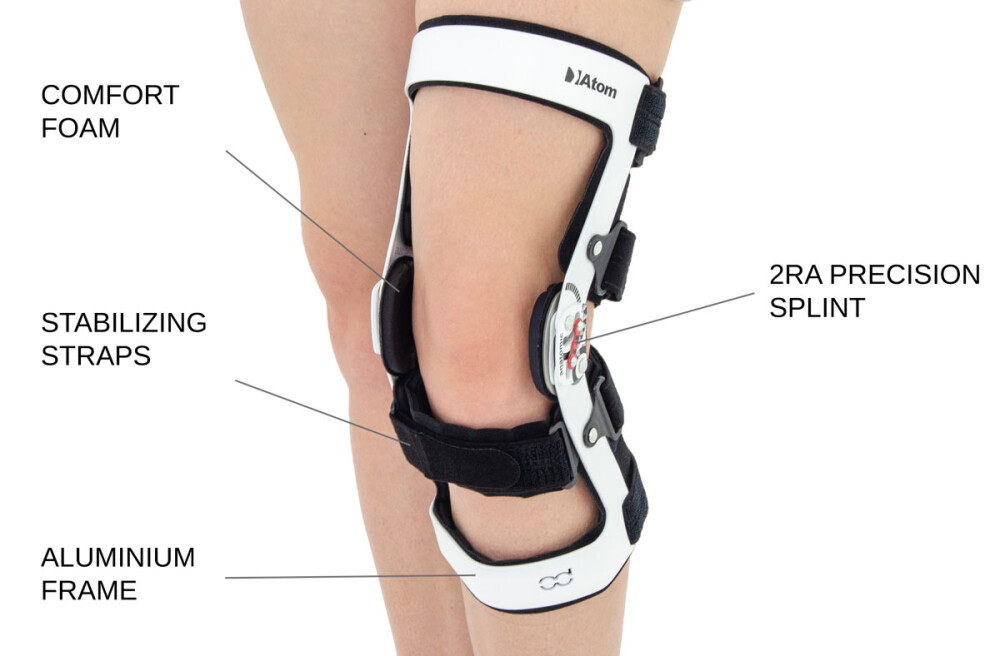 Opornica temelji na sistemu štirih vzvodnih točk in je izdelana iz visokokakovostnega aluminija, ki je površinsko zaščiten s praškastim lakiranjem. Opremljena je z dvema anatomskima tečajema, ki natančno sledita fiziološkemu gibanju kolena ter omogočata nastavitev obsega gibanja (ROM).