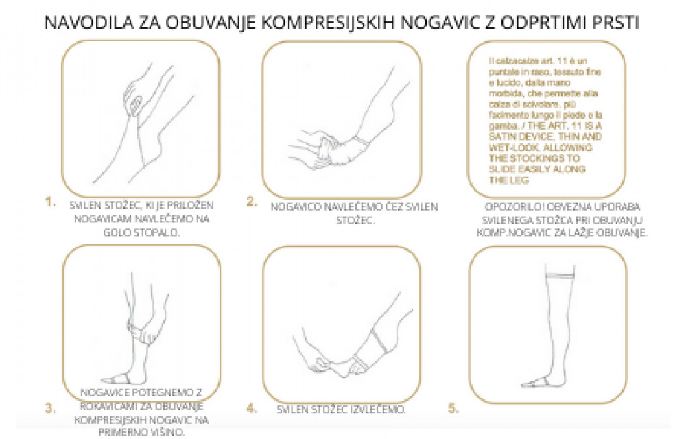 Pri nameščanju kompresijskih nogavic je zelo priporočljiva uporaba rokavic za obuvanje s tem zmanjšamo možnosti poškodbe kompresijske nogavice pri nameščanju ter si olajšamo delo.